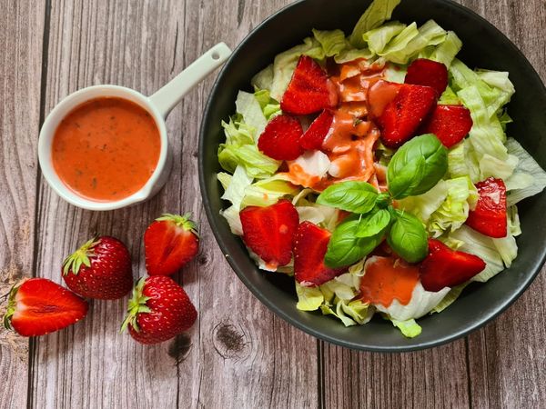 Die Erdbeeren waschen, vom Grün befreien und fein pürieren